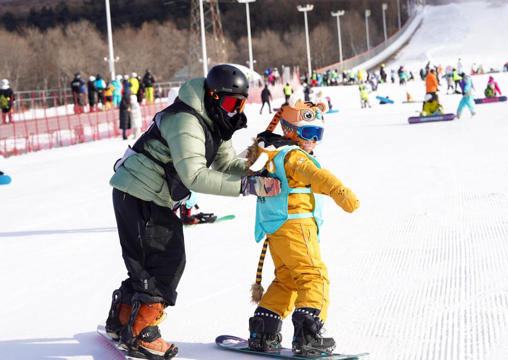 来自吉林市松江东路小学的学生潘十安第一次体验滑雪。刚摔了一跤,他便迅速爬起,眼神里带着不服输的坚定。“我之前不敢滑,但看到大家都在滑,心里突然有了勇气,也想和他们一起滑。”很快,他像朋友们一样爱上了这项运动,并和父母约定要多来练习,挑战更长的雪道。