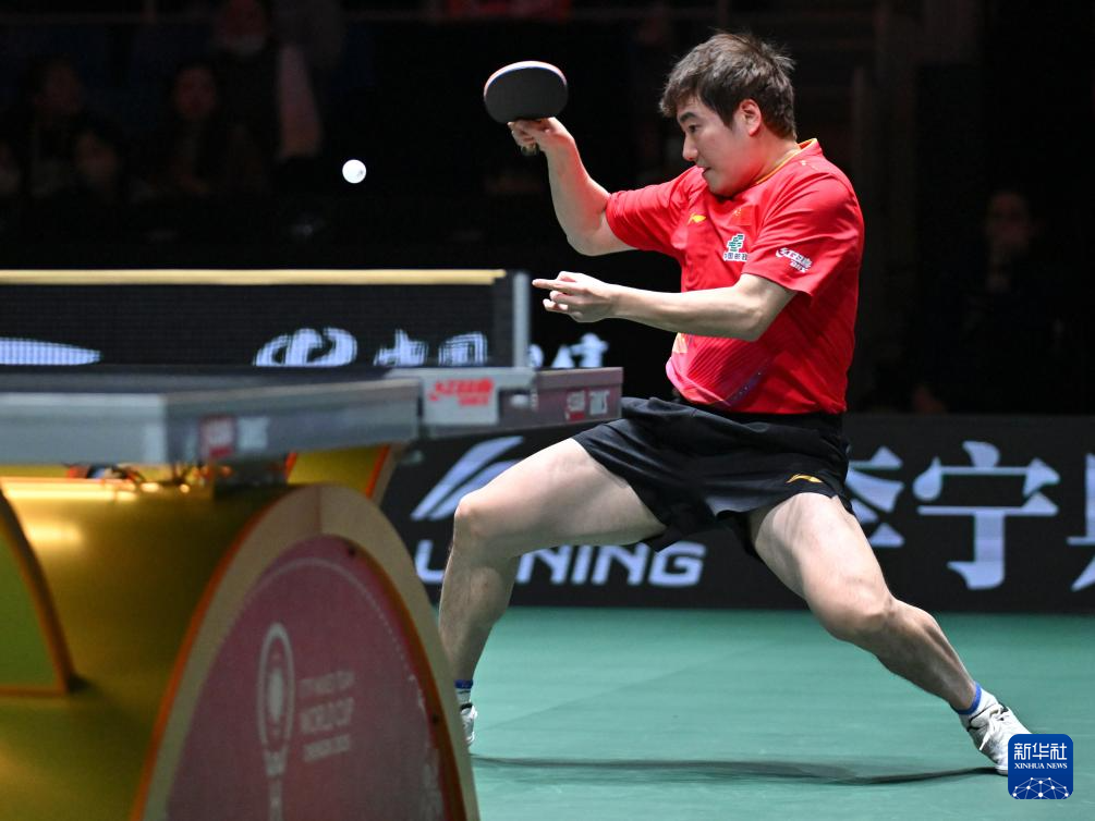 12月4日,中国队选手梁靖崑在男单比赛中。最终,他1比2不敌法国队选手费利克斯·勒布伦。