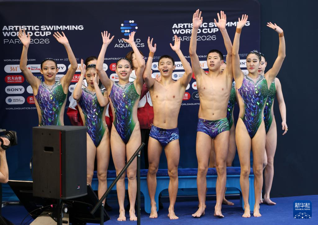 当地时间3月29日,2026年世界泳联花样游泳世界杯巴黎站集体技巧自选决赛在法国巴黎举行。
